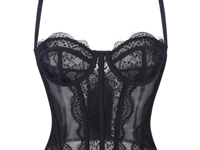 Bustier classico in pizzo nero - Presenta spalline regolabili e intricato pizzo floreale per un look d'ispirazione vintage. Il design strutturato sotto il seno con 3 file di ganci posteriori offre una vestibilità personalizzabile e una silhouette classica. Perfetto per burlesque, cosplay o occasioni speciali.