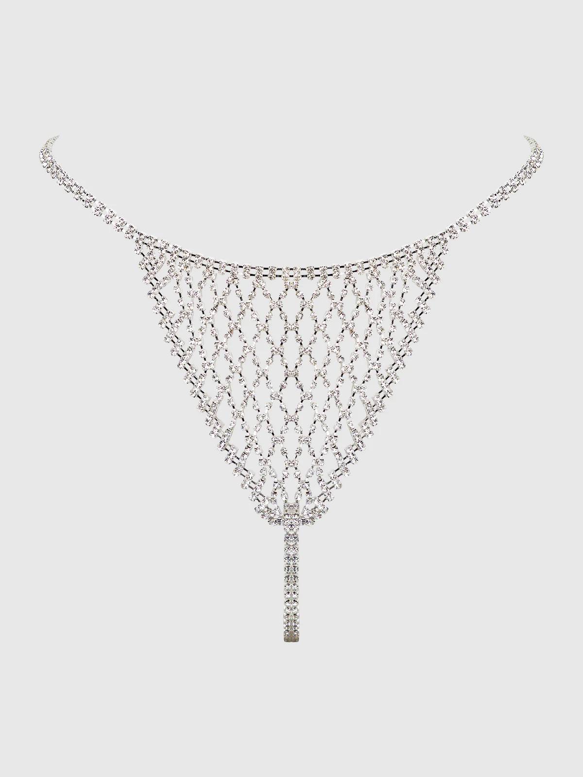 La festa non finisce mai quando inizia con gli strass! Rivestito di cristalli e argento, questo modello in maglia metallica con strass offre una vestibilità regolabile per il tuo comfort. Abbinalo al reggiseno in maglia metallica con strass coordinato.