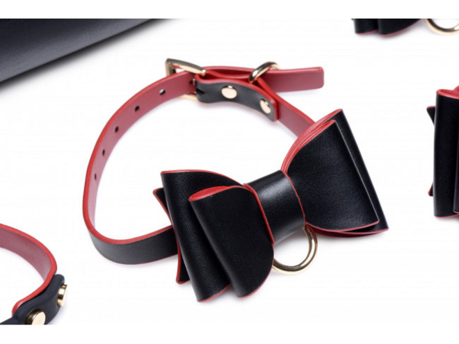 Le tue notti mancano di quel tocco audace e distintivo? Riaccendi la scintilla oscura tra di voi con questo set Bondage Gotico, una collezione vegana creata per unire funzionalità e stile ai tuoi accessori intimi. Il suo resistente design in similpelle, , garantisce comfort con una taglia regolabile. Per aggiungere raffinatezza, gli affascinanti fiocchi neri e rossi si fondono perfettamente con le finiture in metallo dorato per un look tanto accattivante quanto sicuro. Che tu stia creando uno stile ispirato agli anime o cercando di dare una svolta al tuo guardaroba alternativo, questo set ti offre la trasformazione audace che stai cercando.