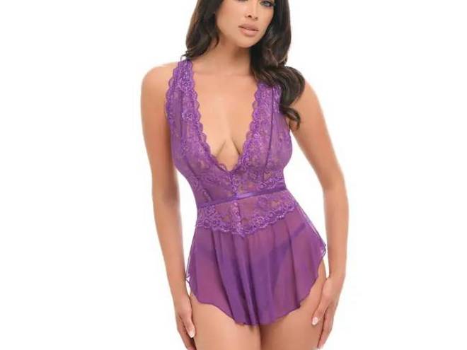 Libera la tua sensualità interiore con il babydoll in pizzo e rete con scollo a V e coppe morbide. Caratterizzato da orlo asimmetrico e perizoma, questo babydoll ti farà sentire sexy e sicura di te per tutta la notte.