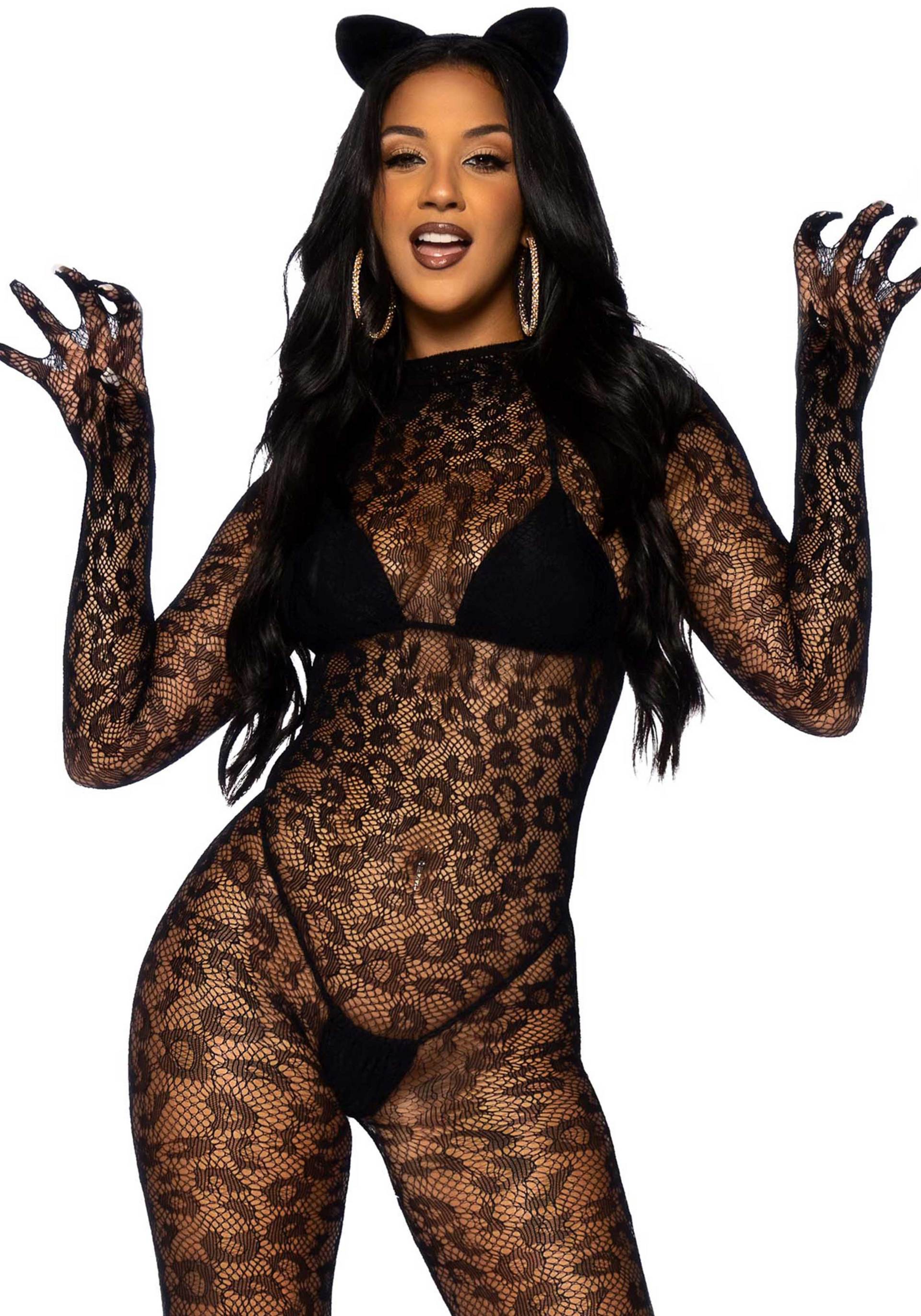 Leopard net gloved catsuit. Leopard net gloved catsuit. Leopard net gloved catsuit.  Leopard net gloved catsuit.