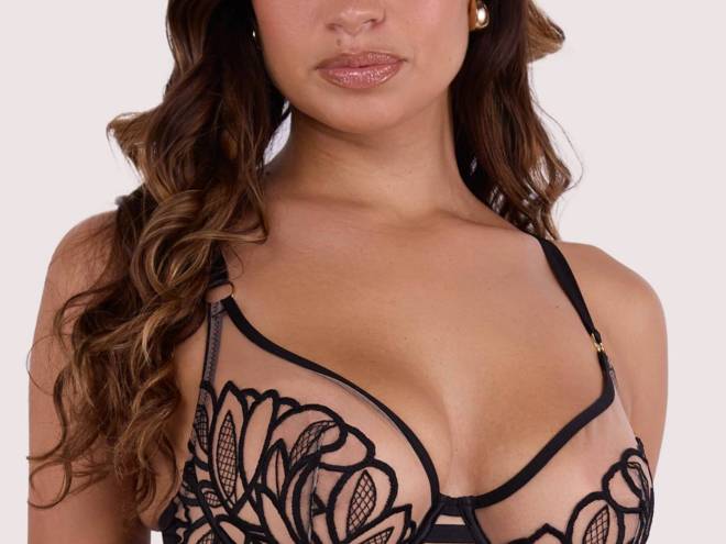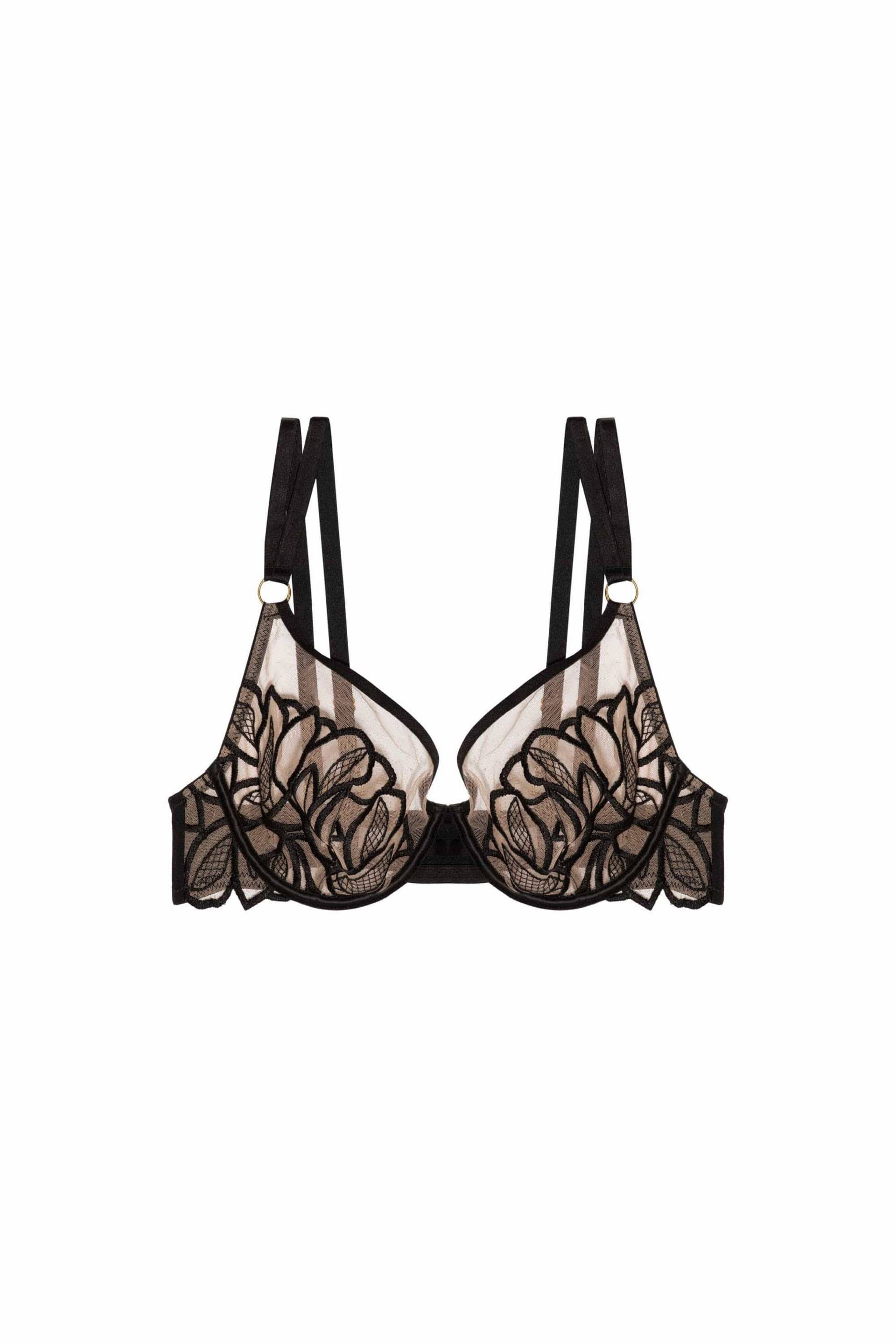 Delicato e audace al tempo stesso: scopri il nostro reggiseno "Lilith Black Graphic Embroidery". Realizzato in una rete a rete color carne quasi impercettibile, con audaci ricami floreali neri a contrasto geometrico, le coppe con ferretto e un trio di spalline che collegano il reggiseno al ponte. Anelli a O in metallo dorato conducono a doppie spalline regolabili e a una fascia posteriore a gabbia con chiusura a gancio.