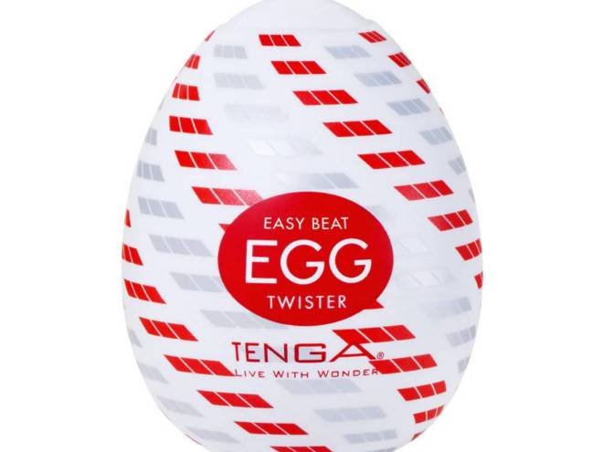 Masturbatore compatto monouso Egg Twister di Tenga con eccitante struttura di stimolazione a spirale all'interno. Il manicotto masturbatore ultra-flessibile è all'interno del guscio a forma di uovo e viene utilizzato insieme durante l'handjob con il lubrificante allegato.