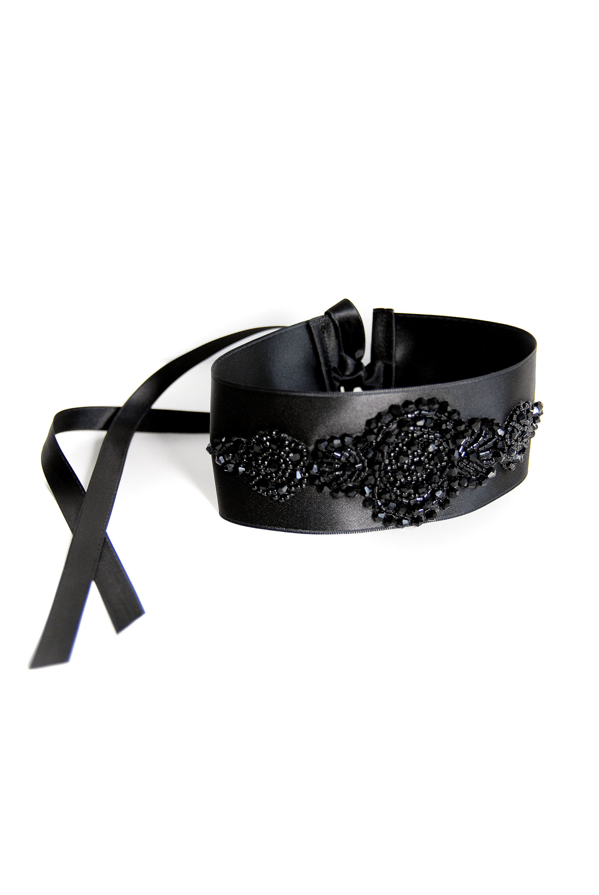 Girocollo Double Face in raso largo 5 cm con applicazione di perle diverse