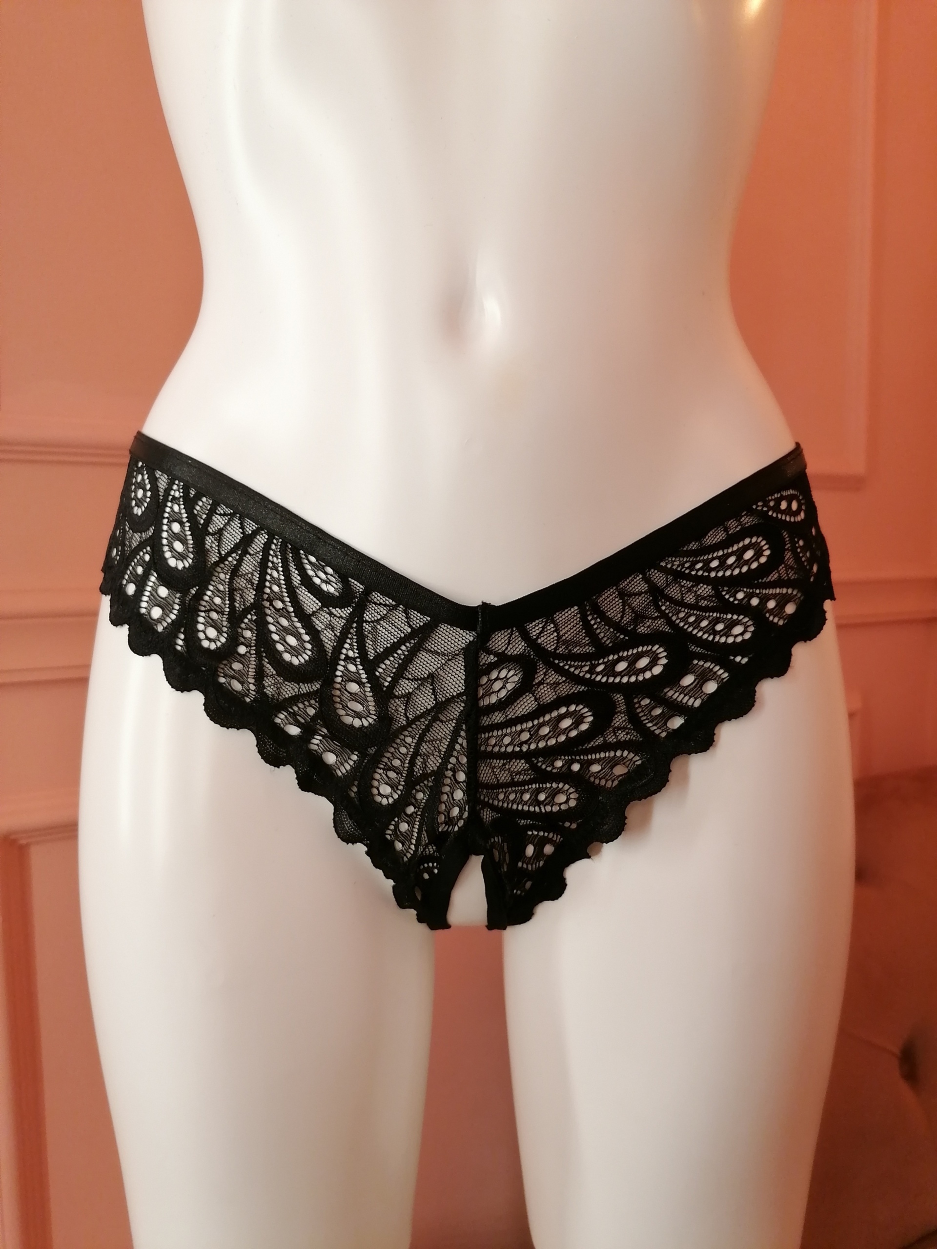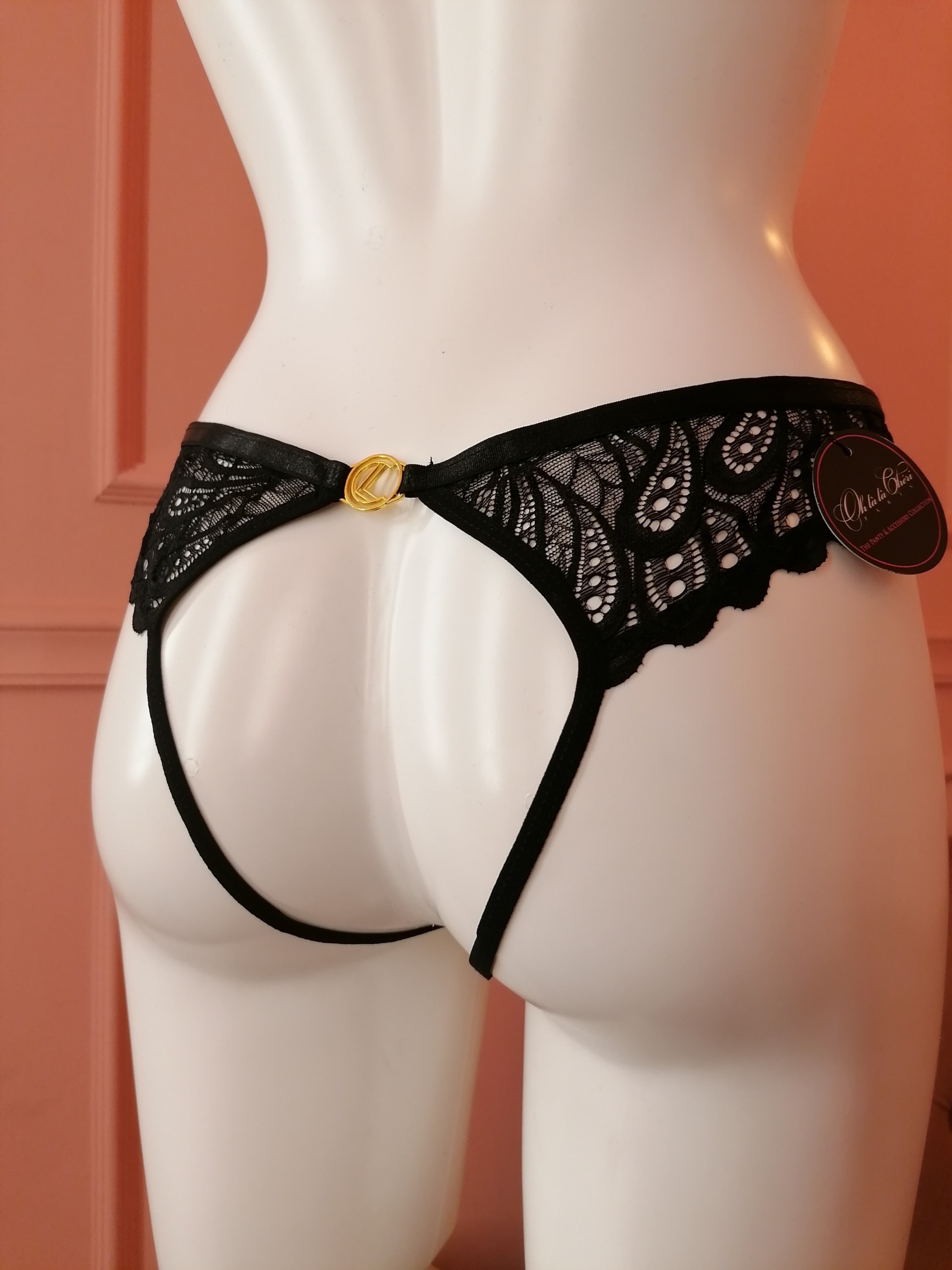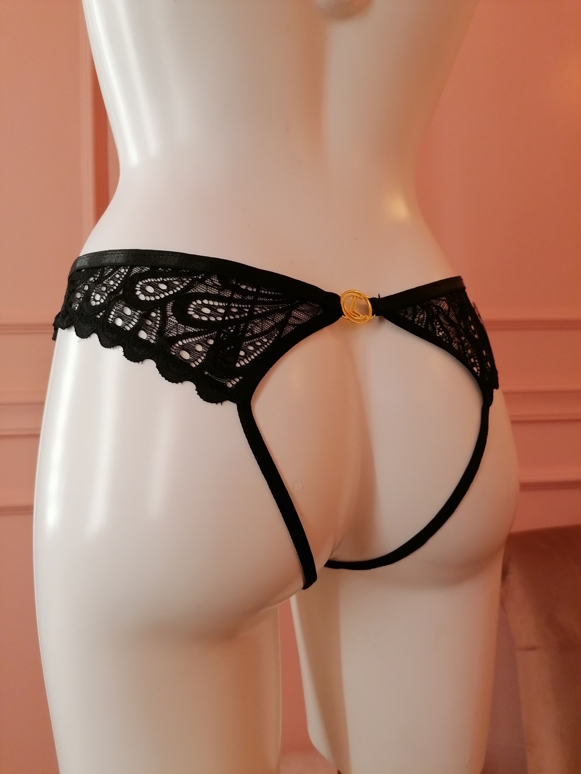 Celia noir crotchless thong