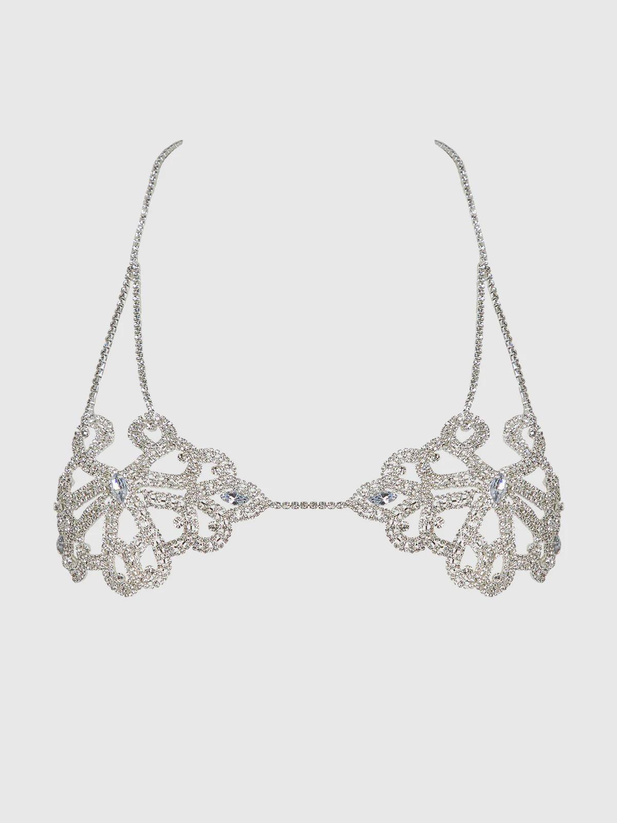 Reggiseno bralette decorato con strass e coppe a spirale decorate.