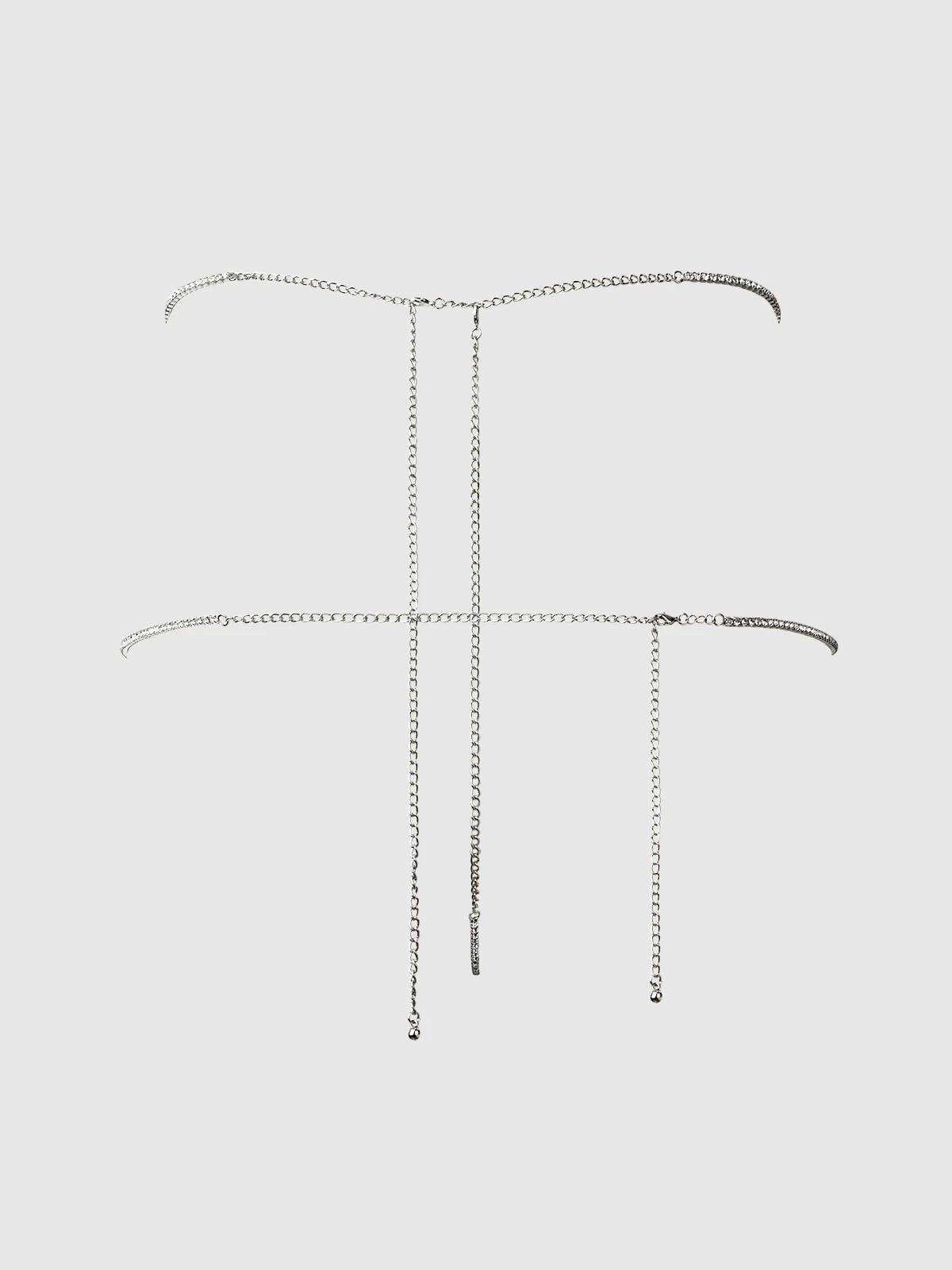 Catena regolabile sul retro con chiusura a moschettone per una vestibilità personalizzata.