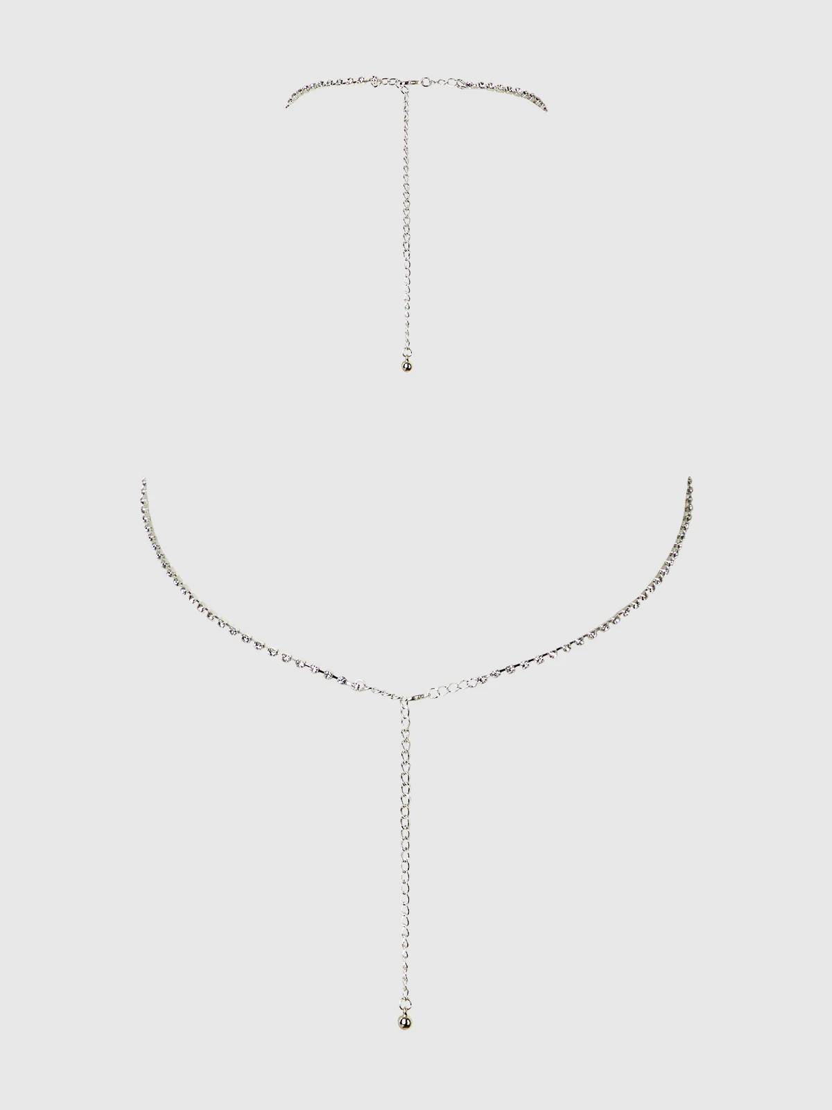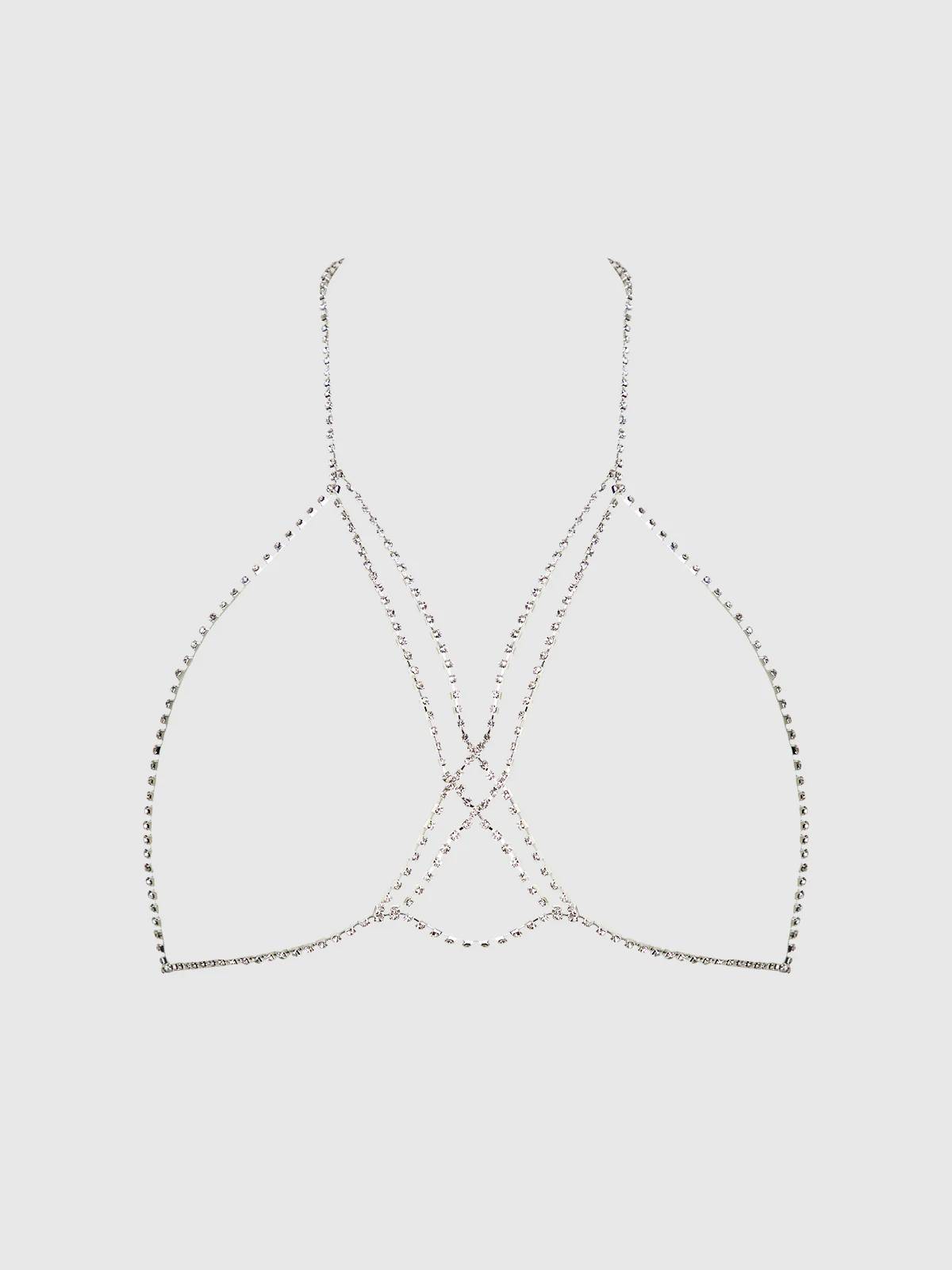 Giusto per augurarvi un look scintillante, questo bustier con incrocio a X e strass è un vero gioiello. Un bustier quasi invisibile che mette in mostra pelle e curve, questo capo scintillante incornicia magnificamente il vostro seno. Cristalli brillanti impreziosiscono le sue sottili spalline incrociate, così potrete mettere in mostra i vostri punti di forza più seducenti.