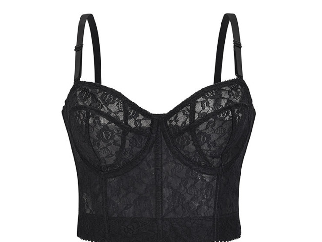 Questo reggiseno sexy presenta un design con top corto e spalline sottili, reggiseno imbottito con ferretto, chiusura posteriore con 3 file di gancetti e occhielli, stecche di plastica per modellare.